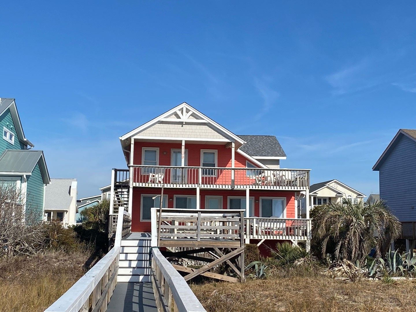 5 BR 5 BA 16 Guests Oceanfront Exterior Front ExteriorOceanSide Exterior NightDownstairs Queen 1Bath 1Downstairs Queen 2Hall BathKitchenKitchen 2Living RoomLiving room 2Deck Deck Upstairs KingUpstairs KingUpstairs KingBath 5Upstairs Queen 1Bath 4Upstairs Queen 2Bath 2Boardwalk at NightOceanOceanBoardwalk DeckBack Exterior Back Exterior BoardwalkBoardwalkOcean ViewOcean ViewOcean View Request info View Availability Book Your 2026 or 2027 Vacation!Featured AmenitiesBed Linens (Weekly Rentals Only)Monthly Rental - Short Term OnlyNightly Rentals