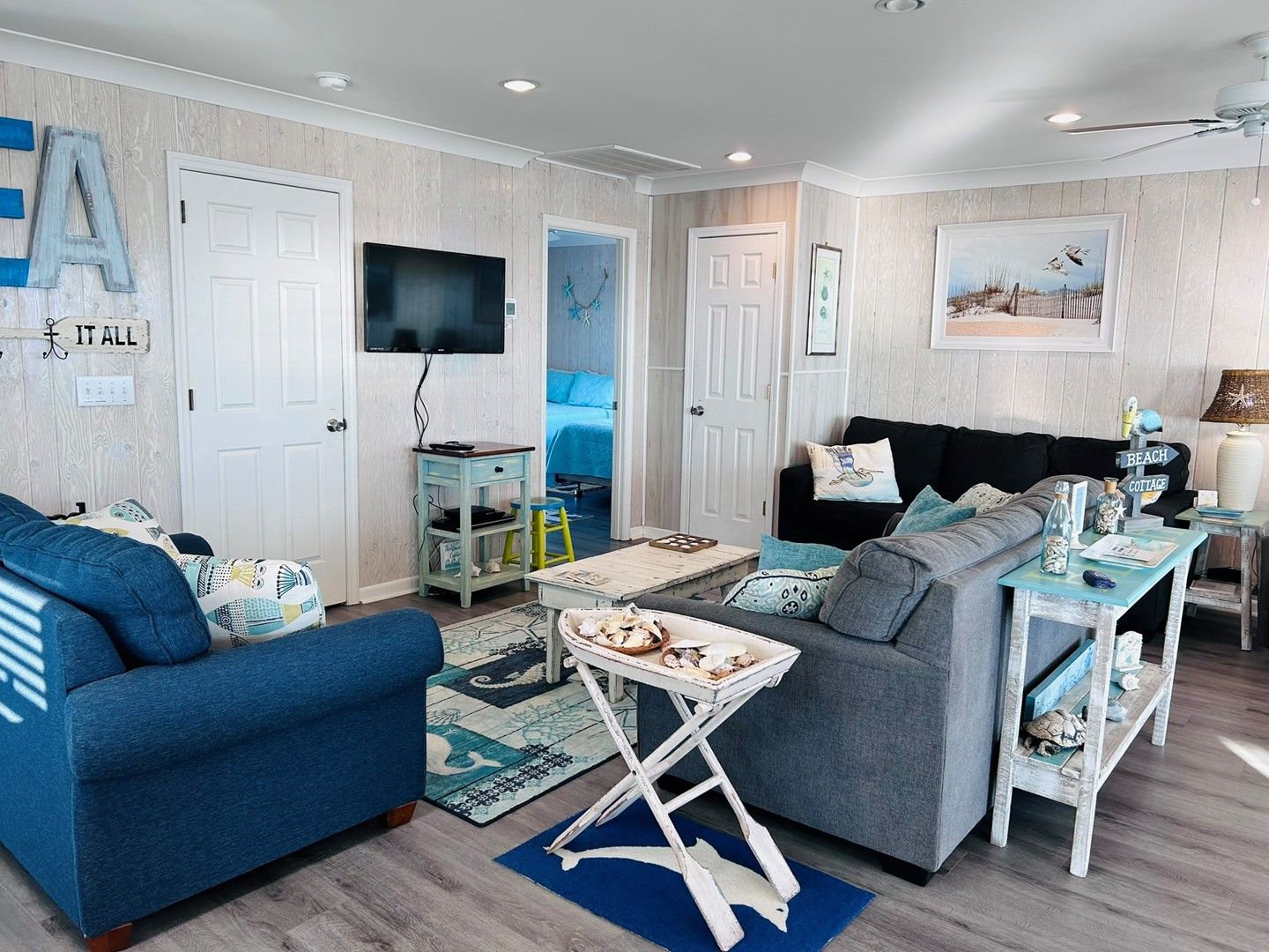 I booked my stay at Sea It All based strictly on the pictures and the wonderful reviews. I was delighted to find it just as wonderful as the pictures and reviews promised. It was very comfortable, very clean and very well furnished. It’s decorated in a tasteful, wonderfully beachy, make yourself at home style. I especially appreciated the gates on the deck, so my dog could relax and people watch in complete safety. These fine folks thought of everything! This is the kind of home you keep coming back to. It’s perfect for a small family or two couples. It’s what a two bedroom beach cottage should be - cozy, but not cramped, retro, but extremely comfortable and maintained. The owners love this cottage, and it shows. That means a lot to me. I am booked for two separate stays in 2024. I can’t wait to get back to Sea It All!