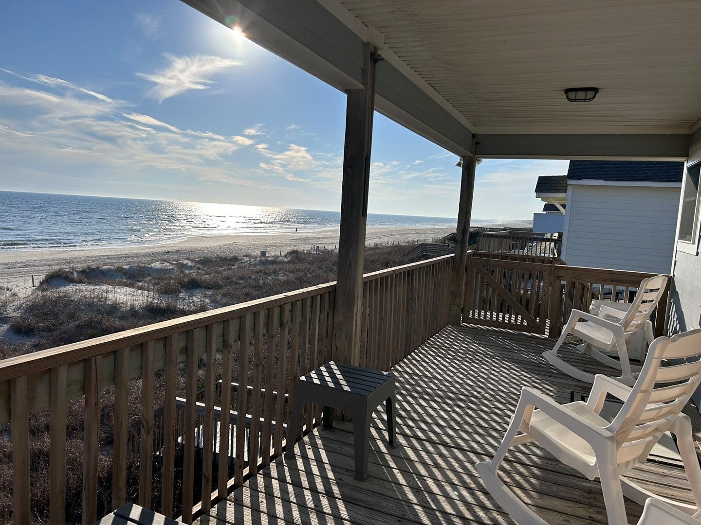 The house is really nice and we loved the location. I love how the house was decorated, so bright and cheery. I love the floor plan and how you can see the ocean from every room. The ocean- side porch is awesome and where we spent every waking moment.