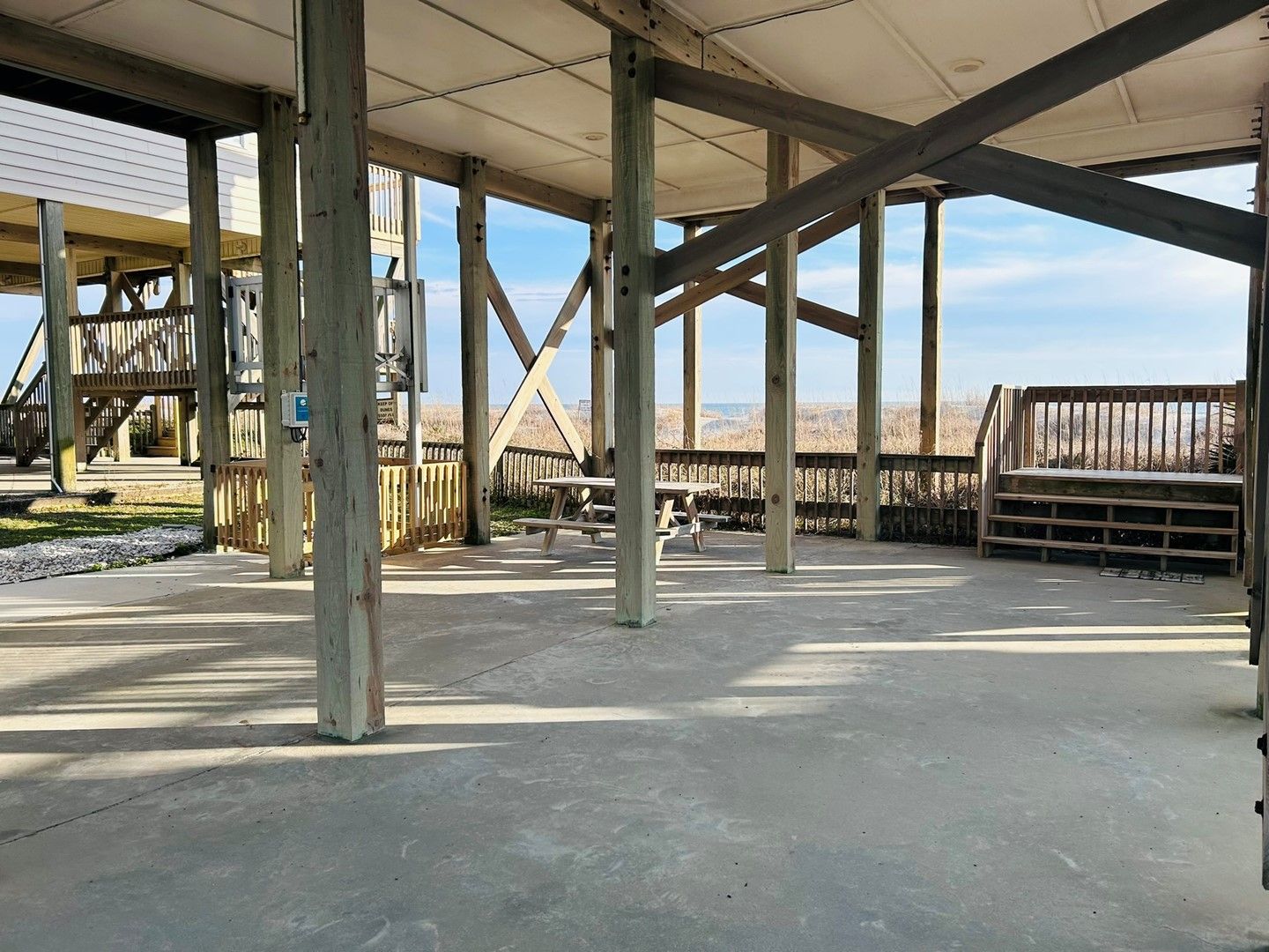 Additional amenities include under-house parking, a private enclosed outdoor shower with hot and cold water, a charcoal grill, and a private walkway to the beach. This exceptional location allows you to truly do it all—fishing, shelling, walking to the point, and even visiting the iconic Holden Beach mailbox.
